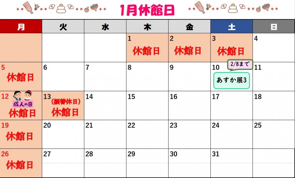 1月の休館日のお知らせ🐴